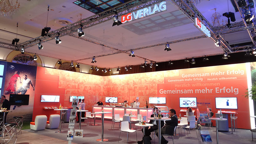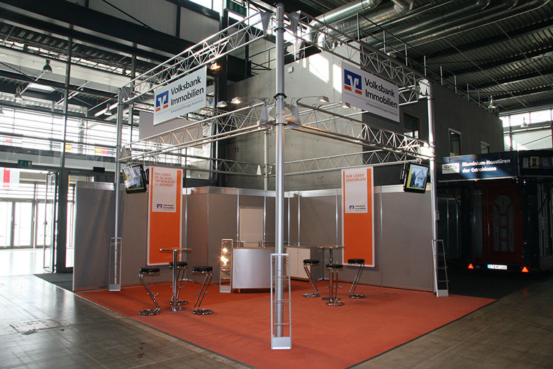 Sie können bei uns zwischen einstöckigen und zweistöckigen Messeständen wählen. Bei der Gestaltung des Standes gehen wir ganz auf Ihre Wünsche und Vorstellungen ein.